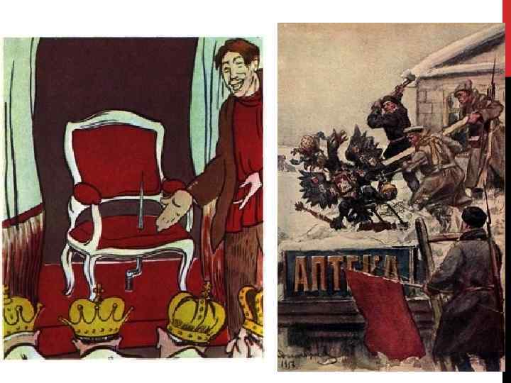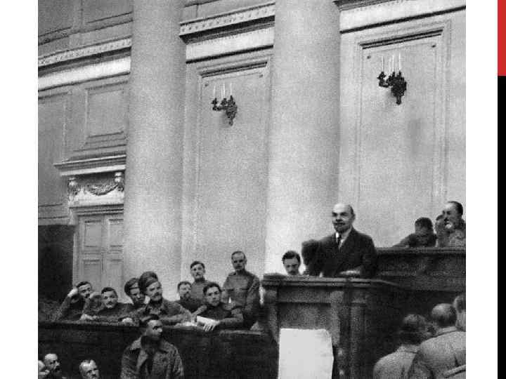 ПЕРВЫЕ МЕРОПРИЯТИЯ СОВЕТСКОЙ ВЛАСТИ Первые месяцы власти – «декретная горячка» 1. Подтверждают отмену сословий 2. Уравнение женщин в правах с мужчинами 3. Церковь отделена от государства 4. Принимается Декларация прав народов России 5. 8 -часовой раб. День 6. Решение жилищной проблемы в городах 7. Ввод смертной казни (с 21. 02. 1918) 8. Ввод цензуры 9. 3. 03. 1918 – Подписание Брестского мира с Германией 10. С августа 1918 объявлен красный террор 11. 19. 07. 1918 – Принятие Конституции