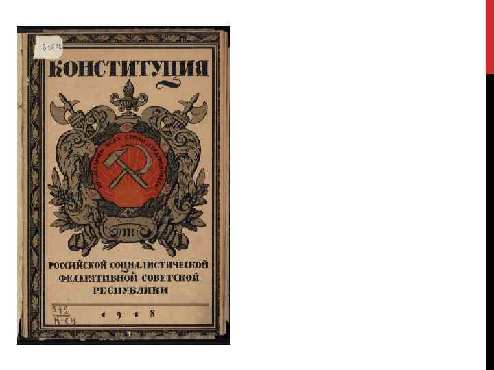 С 1918 г. партия ВКП (б) стала называться РКП (б) Государство: Советская Россия Ф. П. : Республика Форма власти: диктатура пролетариата Режим: социалистическая демократия