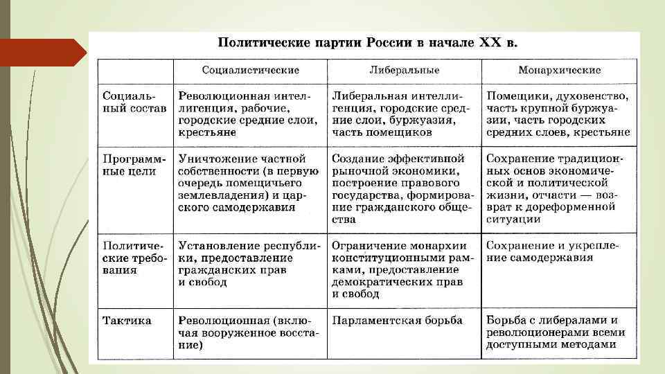 Черносотенцы Политические партии: «Союз русского народа» , «Союз Михаила Архангела» , «Русская монархическая партия» и др. Идеология: монархизма, великодержавного шовинизма и антисемитизма Павел Фёдорович Булацель «Православие, Самодержавие, Народность» Программа: выступали против революции и парламентаризма, поддерживали единство и нераздельность России Иоанн Кронштадтский