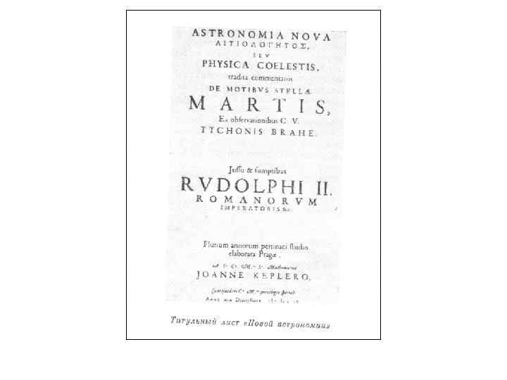 Отношение Кеплера к наблюдениям • Наряду с развитием и углублением общего философского подхода Кеплера к изучению Вселенной в его исследованиях все более возрастала (особенно после встречи с Тихо Браге) роль наблюдений. • Так, в 1596 г. расхождение своей теоретической модели Вселенной с оценками планетных расстояний у Коперника он склонен был объяснять неточностью наблюдений последнего, лежавших в основании этих оценок. • Напротив, при создании в 1600 -х гг. теории движения Марса на основе наблюдений Тихо Браге с его высочайшим авторитетом наблюдателя Кеплер, обнаружив расхождение своих расчетов всего на 8’ , отказался все же от этого очередного варианта своей теории и продолжил поиски, пророчески заметив: « Эти 8’, которыми непозволительно пренебрегать, дадут нам средство преобразовать астрономию» .