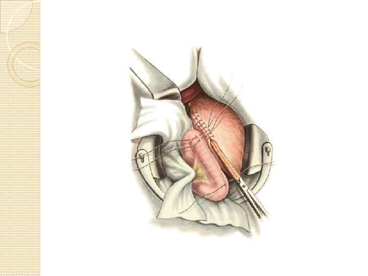 Закончив мобилизацию желудка, выводят начальную петлю тощей кишки в верхний отдел брюшной полости через отверстие, образованное путем рассечения брыжейки поперечной ободочной кишки слева от a. colica media. Цель – наложение анастомоза.