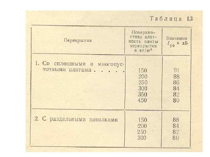 Приведенный уровень ударного шума под перекрытием - величина, характеризующая изоляцию ударного шума перекрытием, (представляет собой уровень звукового давления в помещении под перекрытием при работе на перекрытии стандартной ударной машины), условно приведенная к величине эквивалентной площади звукопоглощения в помещении кв. м - средний уровень звукового давления в помещении под перекрытием при работе на перекрытии стандартной ударной машины - эквивалентная площадь звукопоглощения в защищаемом помещении