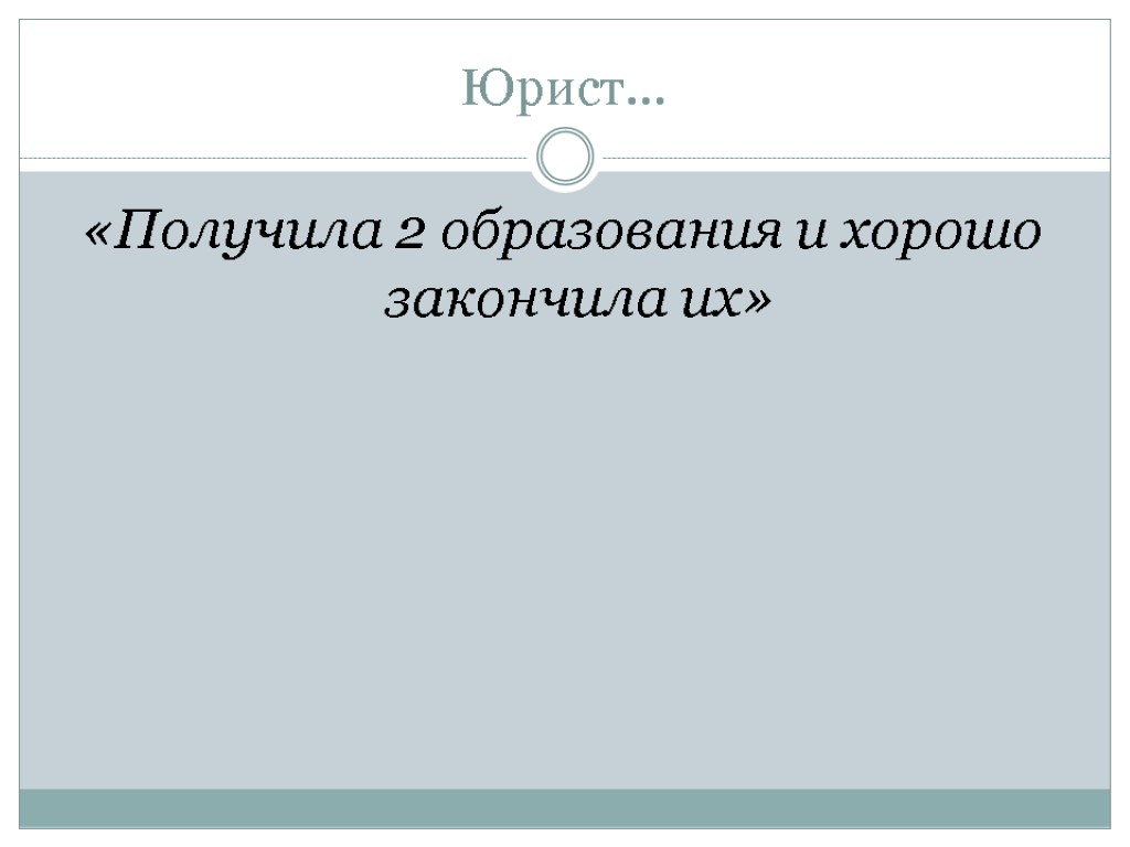 Юрист… «Получила 2 образования и хорошо закончила их»