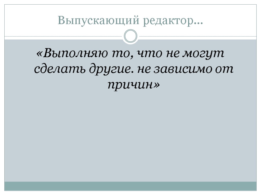 Выпускающий редактор… «Выполняю то, что не могут сделать другие. не зависимо от причин»