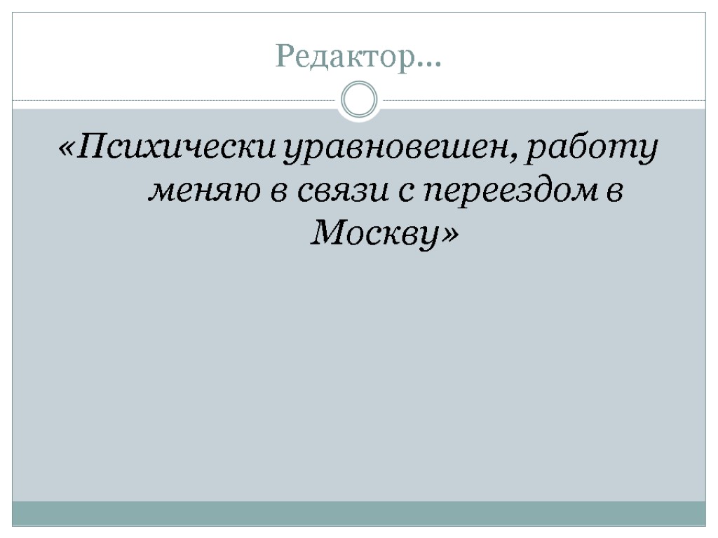Редактор… «Психически уравновешен, работу меняю в связи с переездом в Москву»