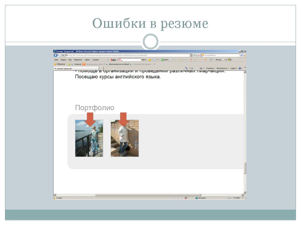 Ошибки в резюме 12. Отсутствие портфолио или ссылок на статьи либо присутствие в портфолио материалов не к месту (рассказов, стихов, поэм и т.п.)