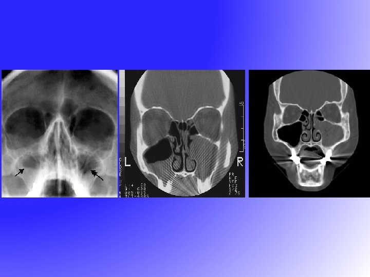 Symptoms • Three cardinal symptoms: ü Purulent nasal discharge (purulent-cloudy) ü Nasal obstruction (congestion, blockage, or stuffiness) ü Facial pain-pressure-fullness (involves the anterior face and peri-orbital region or manifests with headache that can be localized or diffuse).