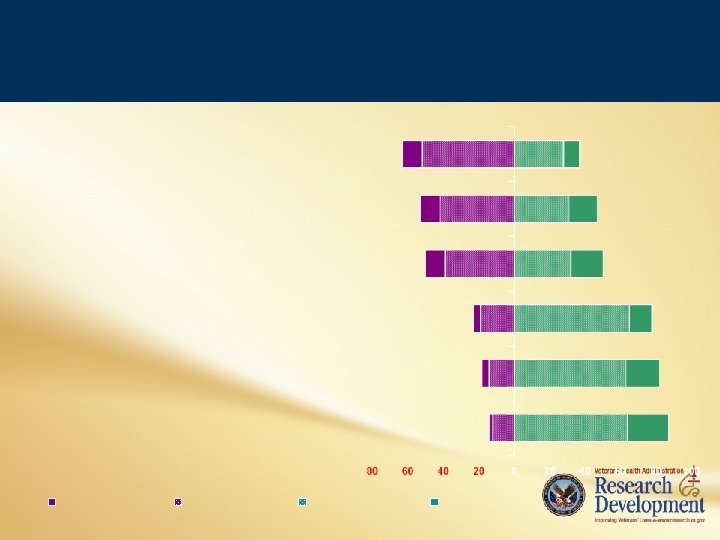 Comparative Effectiveness Research Randomized comparisons of treatments, which could be very different from each other Drugs vs. surgery Surgery vs. device Behavioral therapy vs. pharmacological therapy Real world experiments applicable to clinical practice Community based medical centers Large numbers of patients Broad eligibility criteria Patient centered outcomes: mortality, morbidity Typical of the conducted by VA CSP