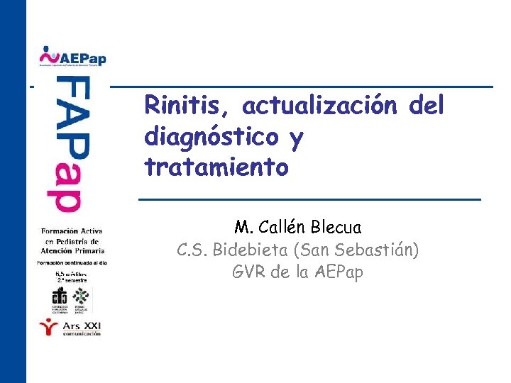 Rinitis, actualización del diagnóstico y tratamiento M. Callén Blecua C. S. Bidebieta (San Sebastián) GVR de la AEPap