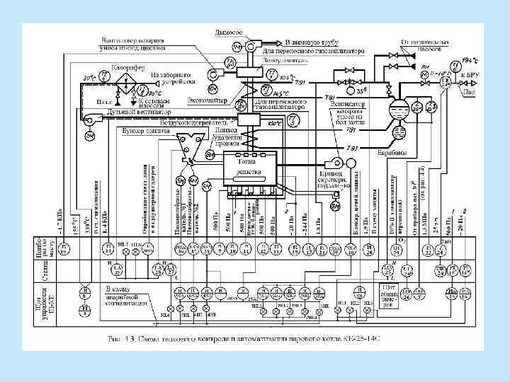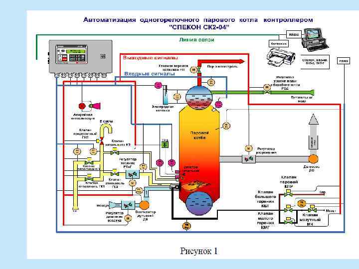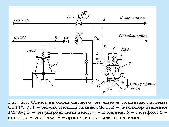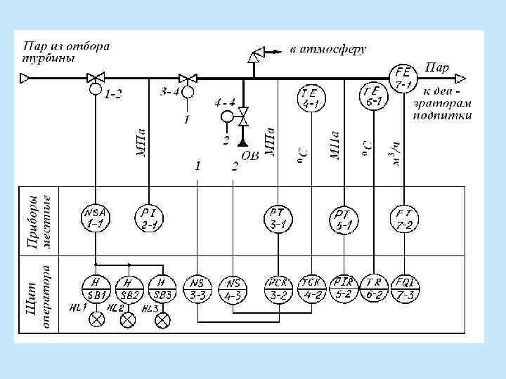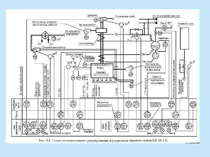 Рис. 2. 3. Функциональная схема системы автоматического регулирования "Контур 2": Д 1, Д 2, ДЗ, Д 4 – датчики; ИС – изме рительный субблок; РС – регулирующий субблок; ПВР – переключатель выбора режима (ручной автоматический); ПРУ – переключатель ручного управления (больше мень ше); ЗУ – задающее устройство ЗУ 11; У 29. 3 – трехпозиционный усилитель; ИЭ – исполнительный элемент (МЭО); РК – регулирующий клапан; ИУ исполни тельное устройство