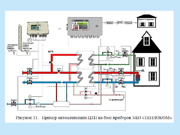 Рис. 3. 2. Схема автоматизации узла присоединения системы отопления через водонагреватель