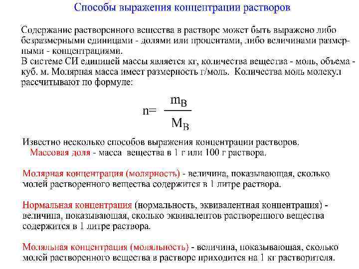 Растворимость S – способность вещества раство- ряться в том или ином растворителе. Она характеризу- ется концентрацией насыщенного раствора. Насыщенный раствор – раствор, находящийся в равновесии с растворенным веществом. Растворимость часто выражают количеством граммов растворяемого вещества в 100 г растворителя. Если раствор содержит растворенного вещества больше, чем это соответствует растворимости при данной температуре, то он называ- ется пересыщенным. Возможность существования пересыщенного раствора объясняется трудностью возникновения центров кристаллизации. В случае растворения твердых или жидких веществ в жидкостях растворимость возрастает с повышением температуры, а для газов – убывает. На растворимость газов большое влияние оказывает давление.