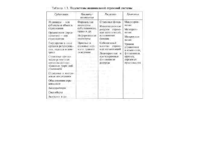Таблица 4. 7. Потребности семей в области страхования жизни Без детей - С детьми 20— 40 лет Защита супруга Защита родителей, нуждающихся в помощи и уходе Дополнительные накопления на крупные покупки Гарантии на случай неработоспособности Налоговые льготы (для обеспеченных) Защита детей и накопление средств на школу, жилье, университет Дополнительные накопления на крупные покупки Налоговые льготы (для обеспеченных) Гарантии на случай неработоспособности |— 40— 60 лет Дополнительная пенсия Налоговые льготы Защита супруга и родителей Гарантии на случай неработоспособности Дополнительная пенсия Защита детей, накопление средств на завершение обучения Налоговые льготы Специфическая защита (например дети, страдающие серьезными заболеваниями, бедные родители) Гарантии на случай неработоспособности 60 лет и бочее Дополнительная защита супруга Гарантии на случай неработоспособности Накопление средств на похороны Страхование на случай необходимости обслуживания Дополнительная защита супруга Гарантии на случай неработоспособности Специфическая защита (например дети, страдающие серьезными заболеваниями) Страхование на случай необходимости обслуживания Страхование внуков Передача наследства