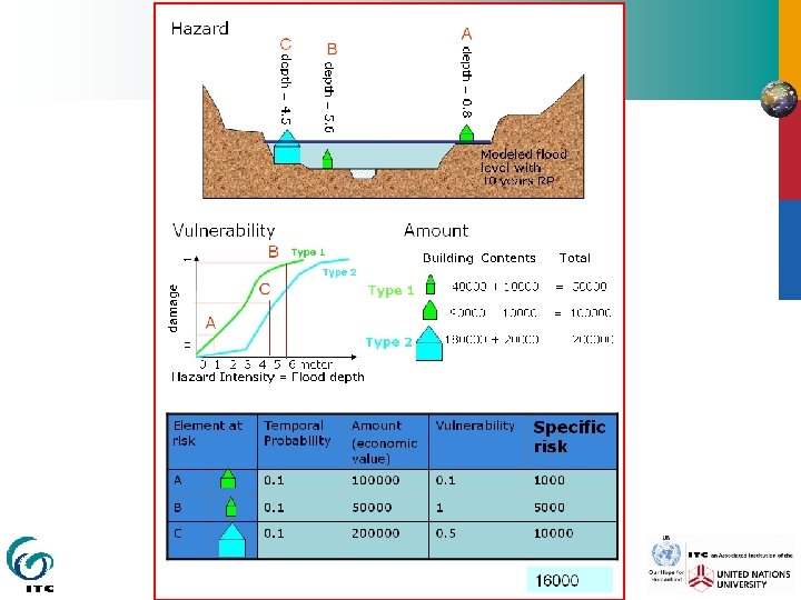 Qualitative versus quantitative risk Qualitative risk analysis methods: No quantification of the probability of losses. Also called relative risk § § § Risk matrix approach Indicator based analysis Spatial Multi-Criteria evaluation Important aspects: Single/ multi hazard Direct/indirect loss (in) tangible loss Losses by sectors (financial, housing, social, agricultural etc) Individual/societal Quantitative risk analysis methods: Quantification of the probability of losses. Also called absolute risk § § § Simple risk overlay Deterministic (scenario based) Probabilistic: § § § Includes all possible scenarios Includes uncertainty Includes chain effect /domino effects complexity Risk = Hazard * Vulnerability * Amount of elements-at-risk