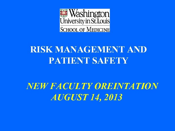 RISK MANAGEMENT AND PATIENT SAFETY NEW FACULTY OREINTATION AUGUST 14, 2013