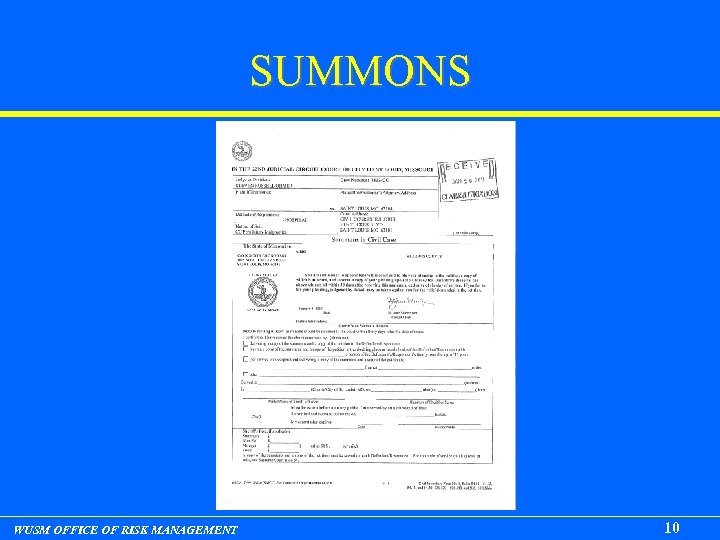 SUMMONS WUSM OFFICE OF RISK MANAGEMENT 10