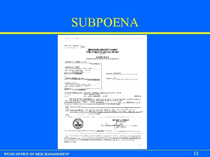SUBPOENA WUSM OFFICE OF RISK MANAGEMENT 12