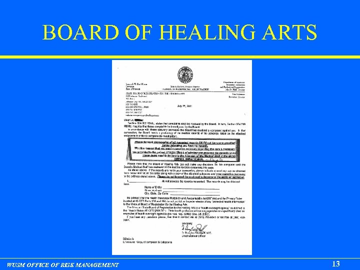 BOARD OF HEALING ARTS WUSM OFFICE OF RISK MANAGEMENT 13
