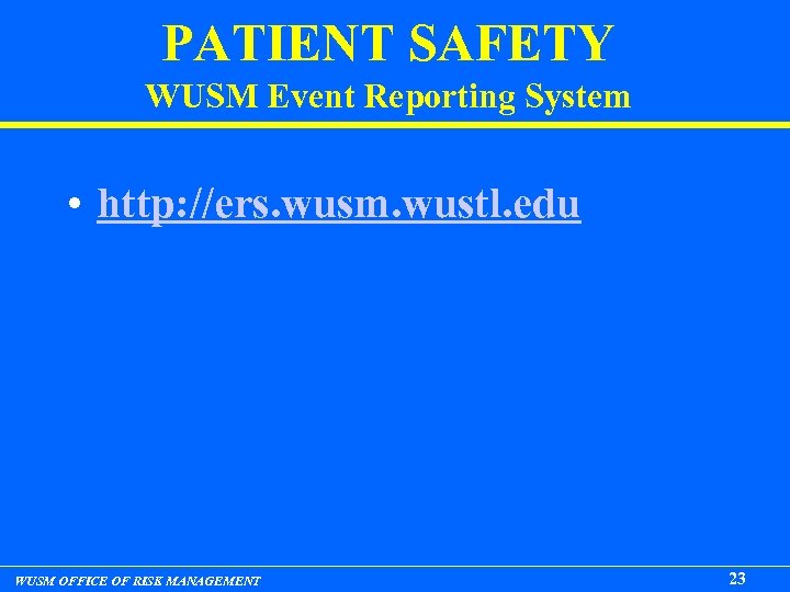 PATIENT SAFETY WUSM Event Reporting System • http: //ers. wusm. wustl. edu WUSM OFFICE OF RISK MANAGEMENT 23