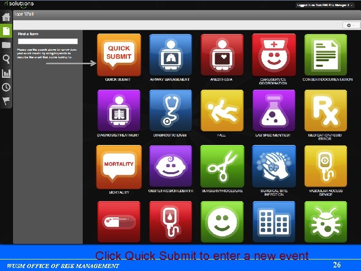 Click Quick Submit to enter a new event WUSM OFFICE OF RISK MANAGEMENT 26