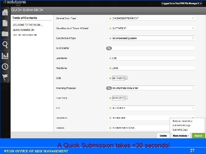 A Quick Submission takes <30 seconds! WUSM OFFICE OF RISK MANAGEMENT 27