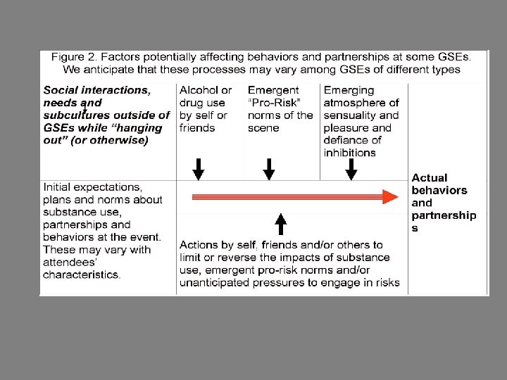 The epidemiologic impact of GSEs may be increased by the rapidity of partner change • Many participants have sex with several others in an hour or less. • Penises, fingers and/or sex toys move rapidly among different people’s vaginas and/or anuses. • These frequent sex acts may bruise or abrade vaginal, anal and penile tissue—which may facilitate transmission of HIV or other infectious agents. • Women’s risk may be increased by a widespread practice of men keeping the same condom on while having vaginal or anal sex with many partners. • Thus, studies and interventions that focus on “using condoms for every sex act” may miss sexual risk for the many community members—both drug users and others– who attend GSEs.