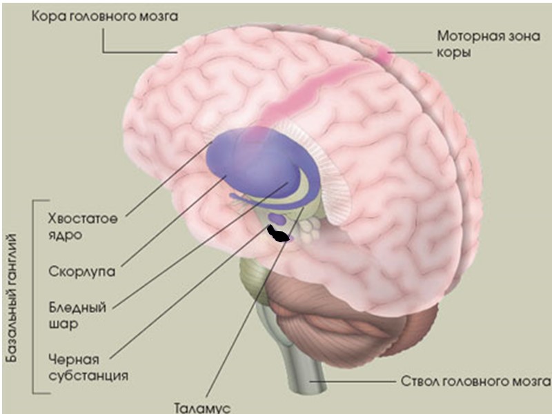 Мозговой ствол A - Таламус (Thalamus), B - Средний мозг (Mesencephalon), C - Мост (Pons ), D - Продолговатый мозг (Medulla oblongata) А В С Д
