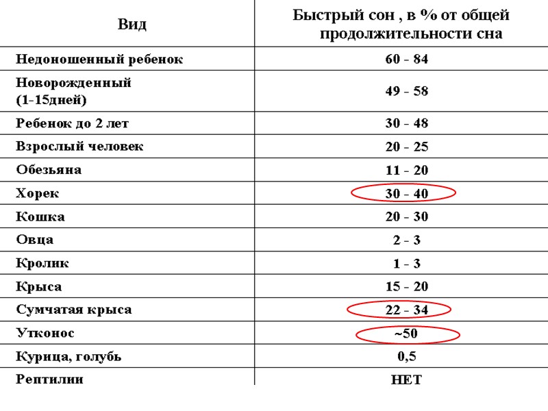 Особенности организации сна у животных Медленный сон у животных дифференцирован меньше, чем у человека, в связи с чем у них не принято выделять стадии медленного сна. Однополушарный сон с одним открытым глазом у китообразных и некоторых птиц парадоксальный сон у китообразных протекает в виде коротких эпизодов длительностью несколько секунд, так же, как и у птиц.