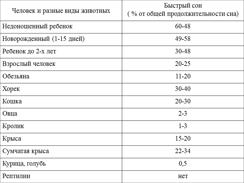Вопросы: Биоэлектрические характеристики сна Лишение животных медленного и быстрого сна Механизмы сна: - медленный сон - быстрый сон Назначение медленного сна Назначение быстрого сна Сон у животных Эволюция сна