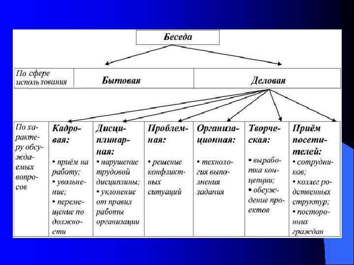 Виды коммуникационного общения: 1. 2. 3. 4. Менторский — поучительноназидательный; Одухотворяющий — возвышающий людей, вселяющий в них веру в свои духовные силы и личностные качества ; Конфронтационный — вызывающий у людей желание возражать, не соглашаться; Информационный — ориентированный на передачу слушателям определенный информации, восстановление в их памяти каких-либо сведений.