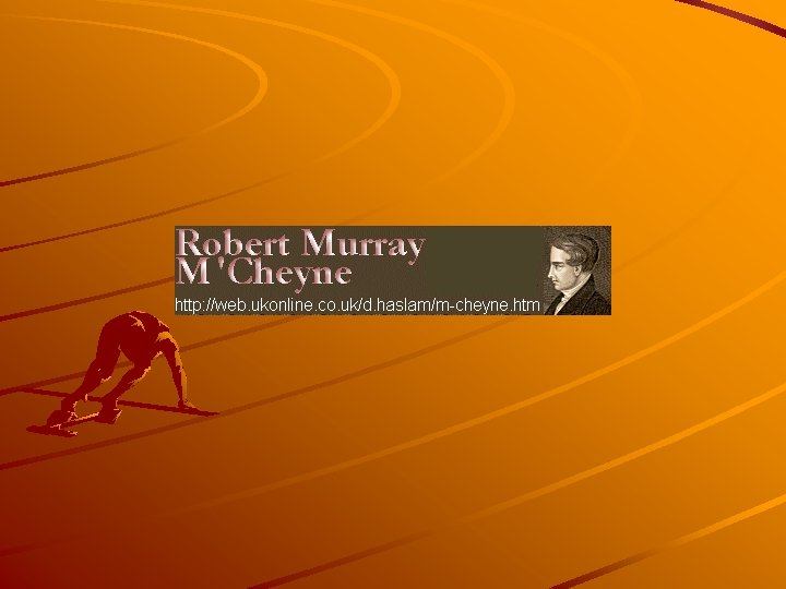 M‘Cheyne timeline (1) 1813 born Edinburgh – Adam M‘Cheyne – Lockhart Murray Dickson 1821 Old High School 1827 University – Classical education 1828 his brother dies – David Thomas M‘Cheyne 1831 Divinity Hall – Thomas Chalmers – Learns Hebrew 1835 July – Licensed to preach Presbytery of Annan 1835 November – Assistant to John Bonar Larbert & Dunipace 1836 November – Ordained as the minister of St. Peter’s Church of Scotland, Dundee 1837 pens the hymn – I am a debtor