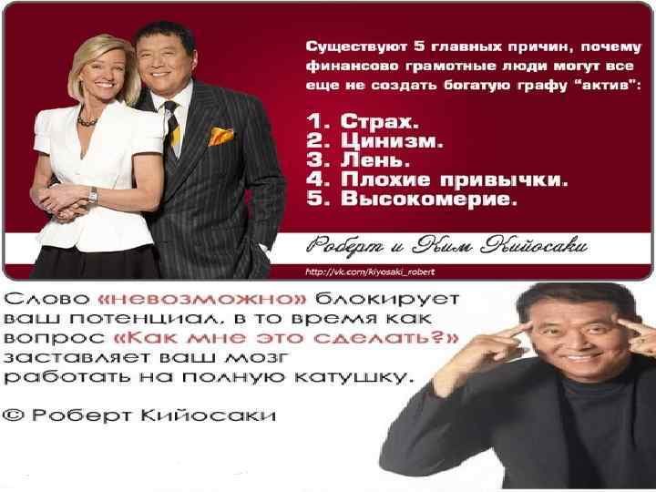 Роберт Тору Киосаки – миллионер, писатель, бизнесмен, автор экономических игр. Интересен тем, что сам прошёл путь от наемного работника до миллионера. Он утверждал, что для достижения финансовой независимости, прежде всего, необходимо менять свое мышление и окружение. Именно окружение формирует наше поведение, мысли и результат. Роберт Киосаки родился 8 апреля 1947 на острове Гавайи. В семье педагогов. Его отец был министром образования, что позволило Роберту учится в лучшей школе, где он общался с детьми из богатых семей. После окончания средней школы Киосаки продолжил обучение в Нью-Йорке. Закончив ВУЗ в 1969 г, он присоединяется к американскому Морскому Корпусу и пошёл служить в военно-морские силы США во Вьетнаме, как офицер и пилот боевого вертолета. В 1974 г Киосаки устраивается работать в компанию «Ксерокс» , торговым агентом. Проработав около трех лет по найму, Роберт решает открыть собственное дело. Это была компания по выпуску нейлоновых бумажников, которые разошлись по всему миру и принесли многомиллионный доход. Сегодня Киосаки признает, что время, так же как и многие предприниматели, совершал традиционные ошибки. Он имел опыт в различных финансовых сферах: игра на фондовой бирже, а также инвестирование в проекты связанные с недвижимостью. Однако не все его проекты были рентабельными и успешными, но именно этот опыт он считает бесценным. Так кризис, приводит к пониманию основных ошибок и вырабатывает навыки гибкого мышления, что позволяет достичь более высоких результатов в будущем. Киосаки хотел не только обогатиться, но и научить этому других. На основания своего опыта он пишет книги в которых рассказывает о тех ошибках и сложных ситуация, которые он преодолевал на пути финансового развития, рассказывает о необходимых навыках и умениях, которые нужны для построения бизнеса. В 1985 г он создал международную образовательную компанию, которая обучала основам ведения бизнеса и финансовой грамотности. В последствия эта организация инвестировала не малые суммы в образование по всему миру. Решив сделать процесс обучения финансовому успеху более наглядным, Роберт Кийосаки разработал уникальную настольную финансовую игру Денежный поток. В ее основу легли финансовые и инвестиционные стратегии, секреты создания, сохранения и приумножения капитала, которые помогли ему самому стать миллионером в возрасте 47 лет. Сейчас Кийосаки занимается операциями с недвижимостью и развитием маленьких компаний, но настоящая его любовь и страсть все же отданы обучении. Основной призыв Роберта Кийосаки звучит так: «Или вы управляете своими финансами, или пляшете под их дудочку всю жизнь. Вы или хозяин денег, или раб денег» . Решать Вам, ведь именно Вы пишите повесть под названием жизнь. Удачи Вам и не совершайте нелепых ошибок, на исправление которых потребуется основной и наиболее важный ресурс Ваше время. Именно поэтому сыграв хотя бы раз в эту игру вы определите уровень вашего мышления и финансовой грамотности.