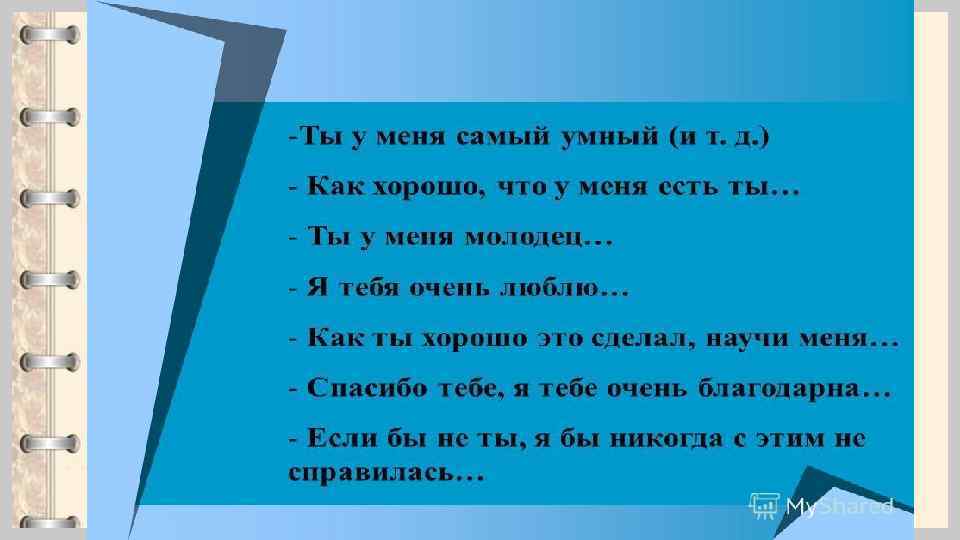 • Дома они также учатся быть организованными, ухаживать за своими вещами и не трогать чужие. • А в школе мы только лишь учим их языку, математике, истории, географии, физике, химии, физкультуре и т. д. • Родительское воспитание мы лишь подкрепляем, но никогда не сможем заменить!.
