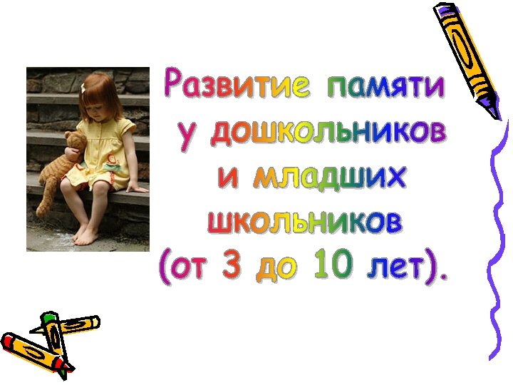 Игры для развития памяти 1. Игра "Фотоаппараты" - на развитие памяти и внимания. 1 -ый вариант: детям на секунду показывается карточка с любым изображением, должны как можно подробнее описать его.