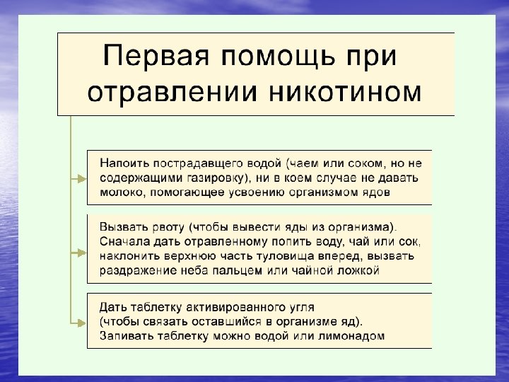 Признаки отравления никотином • Горечь во рту • Кашель и головокружение • Тошнота • Слабость и недомогание • Бледность лица