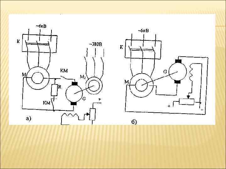 Рис. 5. 31. Схемы электромеханического (а) и электрического (б) вентильномашинных каскадов