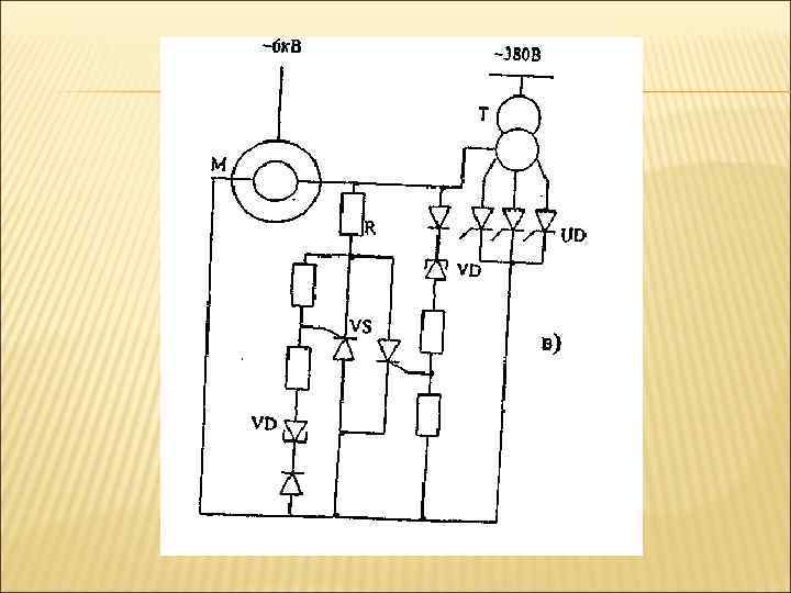 1. 2. 3. При этом э. д. с. якоря Ея превышает величину напряжения питания якорной цепи Ея >Uя и ток в якорной цепи пойдет под действием э. д. с. якоря Ея; знак тока будет противоположен знаку напряжения питания, что означает, что энергия торможения отдается в сеть питания постоянного тока. Отсюда следуют три условия существования режима рекуперативного тор можения. Цепь питания должна обеспечивать возможность протекания тока встречно напряжению источника питания; это условие особенно важно в случае питания двигателя постоянного тока от полупроводниковых преобразователей, элементы которых обладают односторонней проводимостью тока. Источник питания должен обладать возможностью вос ринимать отдаваемую двигателем энергию и передавать ее в питающую сеть; так режим рекуперативного торможения невозможен, если привод получает питание от автономной дизельгенераторной установки. Для того чтобы рекуперативное торможение было возможно в пределах заданного диапазона регулирования скорости, регулирование должно производиться путем изменения напряжения, подводимого к якорной цепи двигателя.