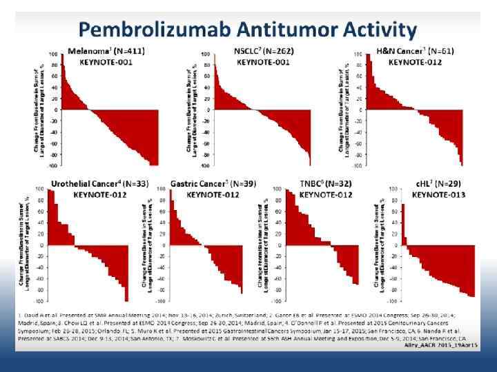 KEYNOTE 001 Пембролизумаб: 3 летняя выживаемость • 3 -х летний рубеж переживает 40 % пациентов • Медиана общей выживаемости составляет около 2 -х лет. Robert C, Ribas A, Hamid O, et al. Three-year overall survival for patients with advanced melanoma treated with pembrolizumab in KEYNOTE-001. Abstract 9503, American Society of Clinical Oncology 2016 annual meeting