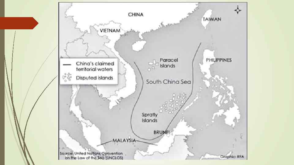 Территориальные споры. Парасельские острова (Китай, Вьетнам); архипелаг Спратли (Китай, Вьетнам, Малайзия, Филиппины, Бруней) Первая причина: военно-стратегическое значение островов Вторая причина: пролегание основных торговых путей Третья причина: богатые залежи энергетических ресурсов на шельфе