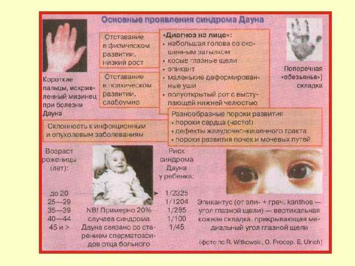 Аномалии соматических хромосом Трисомия по 18 -й паре — синдром Эдвардса (частота 1: 7000). Дети рождаются слабыми, имеют скошенный подбородок, очень маленький рот, низко посаженные уши. Имеются диспропорции в строении скелета — длинные пальцы, указательный палец прикрывает 3 -й и 4 -й. Дети рано погибают, так как имеют различные пороки внутренних органов (2/3 детей с синдромом Эдвардса умирают в первые 6 месяцев жизни).