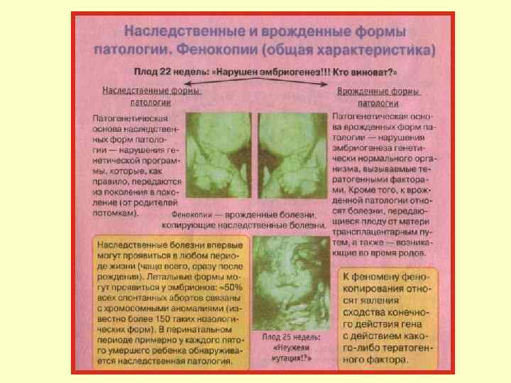 Подходы в борьбе с наследственными болезнями 1. Массовое «просеивание» новорожденных на наследственные дефекты обмена веществ (выявление фенилкетонурии, гипотиреоза, муковисцидоза, галактоземии и др. ). 2. Пренатальная диагностика (с использованием разных методов: УЗИ, фетоскопия, амниоцентез и др. ) в 1 - и 2 -м триместрах беременности. 3. Медико-генетическое консультирование. 4. Контроль за мутагенной опасностью факторов окружающей среды.