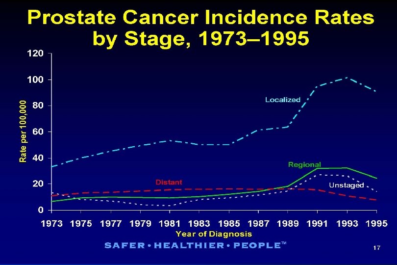 Скрининг При верифицированном РПЖ, если ПСА<10 , то в 80 -90% опухоль ограничена простатой и пятилетняя выживаемость составляет 90% Если 10<ПСА<50, у 50% опухоль вышла за пределы капсулы предстательной железы и радикальное излечение сомнительно При ПСА>=100 имеются метастазы в скелете, пятилетняя выживаемость 20 -30%