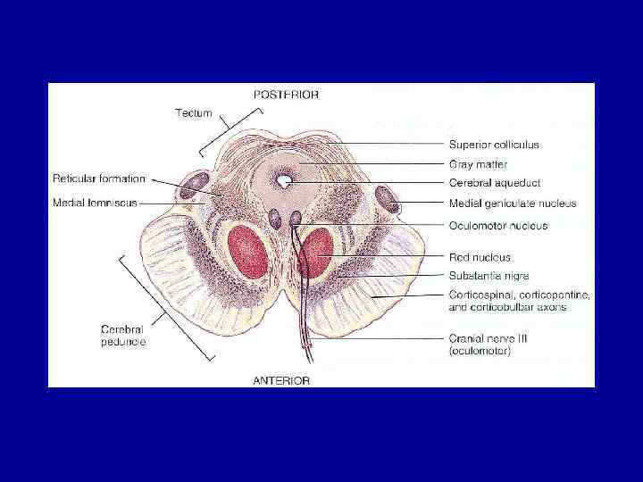 В мосте берут начало: • пара VII –лицевой нерв (мимические мышцы); • пара VI –отводящий нерв (мышцы глазного яблока); • пара V – тройничный нерв (жевательные мышцы и мышцы неба, лица).