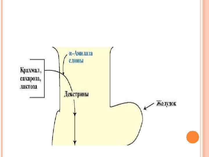 ФЕРМЕНТЫ ПЕРЕВАРИВАНИЯ Амилаза слюны расщепляет α 1, 4 -гликозидные связи в крахмале. В ротовой полости происходит лишь частичное переваривание крахмала, так как действие фермента на крахмал кратковременно. Основными продуктами переваривания крахмала в ротовой области являются декстрины.
