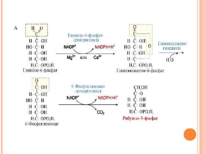 ПЕНТОЗОФОСФАТНЫЙ ПУТЬ ПРЕВРАЩЕНИЯ ГЛЮКОЗЫ Пентозофосфатный путь является альтернативным путем окисления глюкозы. К синтезу АТФ этот путь не приводит. Этот процесс поставляет клеткам кофермент NADPH (использующийся как донор водорода в реакциях восстановления и гидроксилирования) и обеспечивает клетки рибозо-5 - фосфатом (который участвует в синтезе нуклеотидов и нуклеиновых кислот).