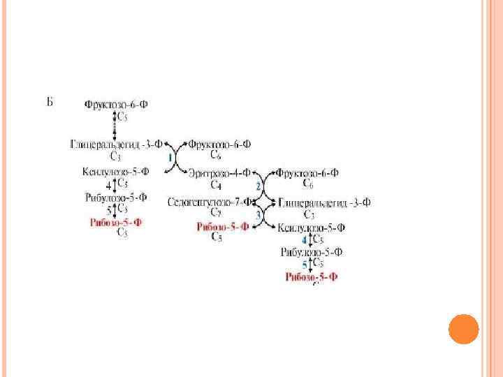 Неокислительный этап образования пентоз обратим, следовательно, он может служить для образования гексоз из пентоз. С помощью этого пути избыток пентоз, превышающий потребности клетки, может быть возвращен в фонд гексоз.