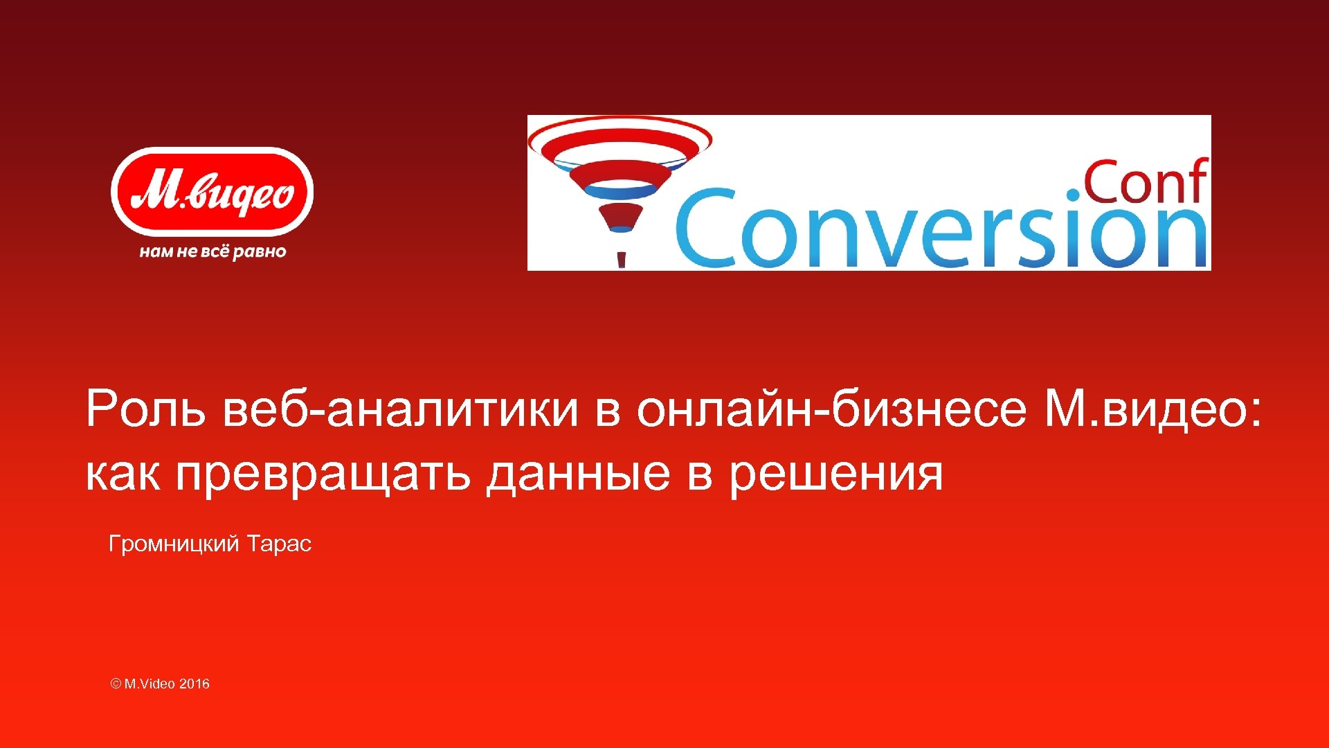 Роль веб-аналитики в онлайн-бизнесе М. видео: как превращать данные в решения Громницкий Тарас © M. Video 2016