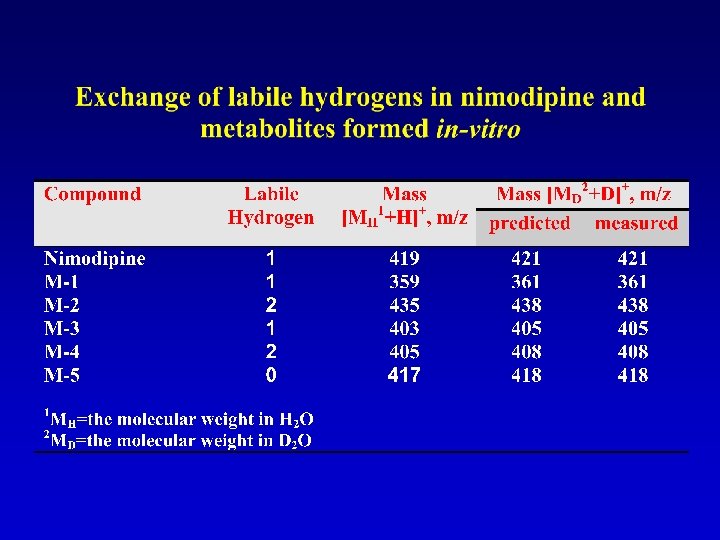H-D exchange methods are useful for determination of: • N- or S-oxide formation and mono- hydroxylation • Conjugation such as glucuronidation • Dehydrogenation or dealkylation