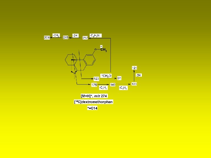 LC-MS spectra of [M+H]+ m/z 274, nonmetabolized [14 C]dextromethorphan, (A) MS 2, (B) MS 3 and (C) MS 4 following incubation of [14 C]dextromethorphan with HLM