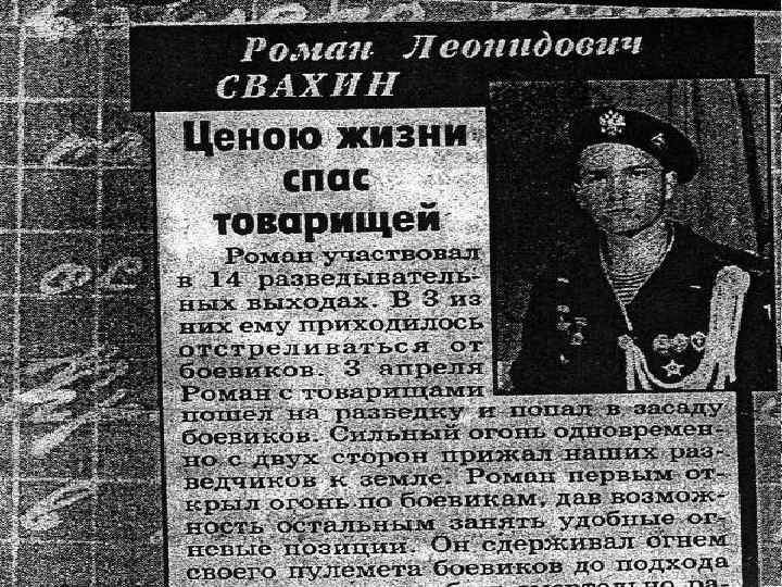 Роман Леонидович Свахин – герой Чеченской войны МОУ ООШ № 41 г. Ярославль